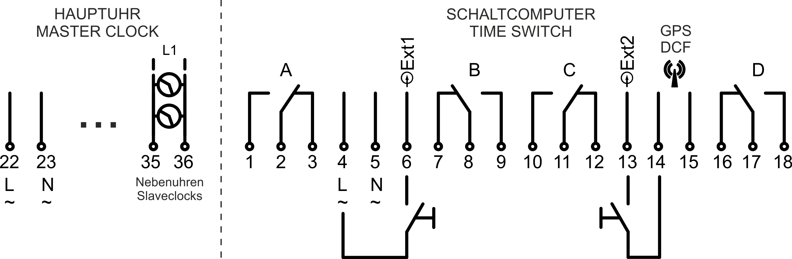 - L'appareil peut être utilisé pour : la commande d'horloges esclaves dans écoles, salles de sport, hôpitaux, usines et entreprises ou grands bâtiments tels que horloges de tour.